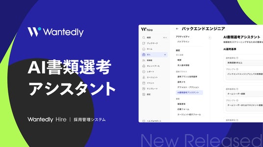 ウォンテッドリー株式会社(本社:東京都港区、代表取締役CEO:仲暁子、以下「ウォンテッドリー」)は、2026年2月25日(水)より、次世代型採用管理システム「Wantedly Hire(ウォンテッドリー ハイアー)」において、新たに「AI書類選考アシスタント」の提供を開始します。同機能は、応募者の職務経歴書や履歴書等と選考基準の合致度をAIが自動で判定・可視化するもので、Wantedly Hireの「グロースプラン」以上を契約中の企業さまにご利用いただけます。