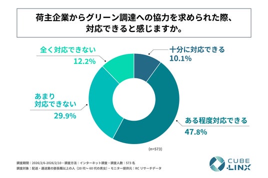 配送・運送業の部長職以上の人の4割以上が、荷主企業からグリーン調達への協力を求められた際、対応できないと感じている
