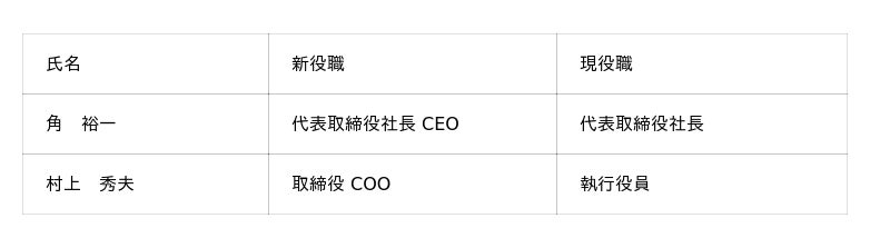代表取締役 CEOおよび取締役 COOの設置に関するお知らせ