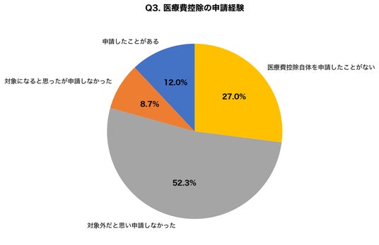 【調査結果】医療費控除を実際に申請した経験がある人はわずか12.0%