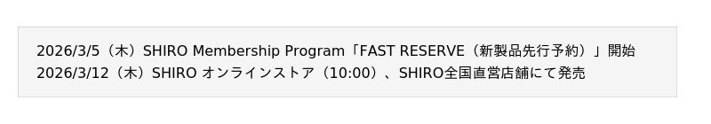公式Instagram:https://www.instagram.com/shiro_japan?igsh=NTc4MTIwNjQ2YQ==