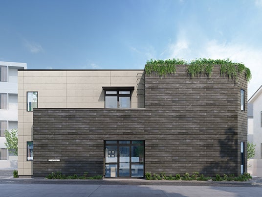 一般的に、建物は完成時がもっとも鮮やかと思われがちです。しかし「(仮称)コレタス経堂」は、セメントの質感をそのまま活かした環境配慮型の仕上げ材「SOLIDO」を使用することで、時間経過とともに自然に色褪せていく「情緒」も価値の一環となるようデザインされています。