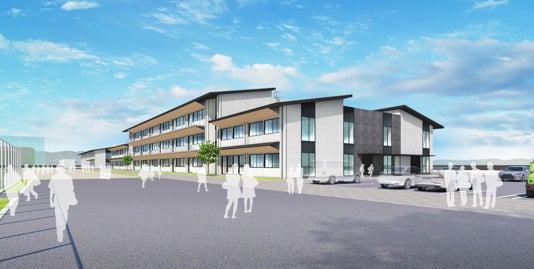 新校舎完成イメージ。2026年12月完成予定、現1年生が3年時から利用開始