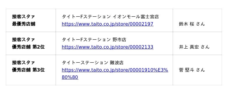 【結果報告】「第19回接客スタァ誕生!!コンテスト」接客No.1は「タイトーFステーション イオンモール富士宮店」に決定!