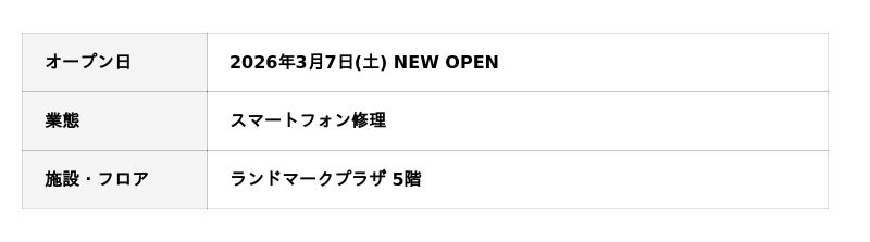 ランドマークプラザ TEL:045‐222‐5015 (11:00~20:00)