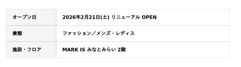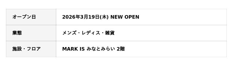 MARK IS みなとみらい TEL:045‐224‐0650 (10:00~20:00)