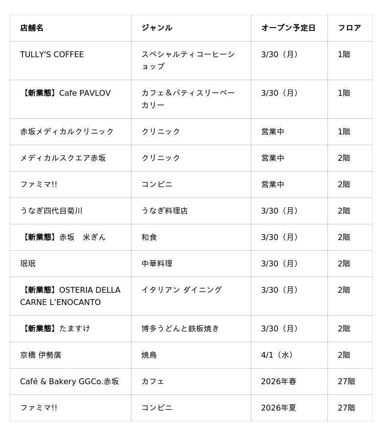 森トラスト株式会社は、大規模複合開発プロジェクト「東京ワールドゲート赤坂」において、新たなショップ&レストランがオープンすることをお知らせいたします。今回、4つの新業態を含む14店舗が加わることで、全18店舗の構成となります。
