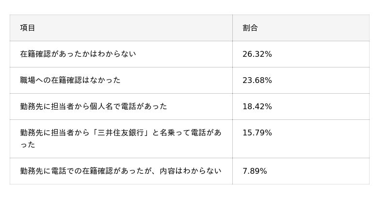 ■三井住友銀行カードローンの在籍確認について、当てはまるものを選んでください