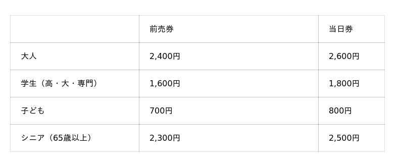 当日券 :3月27日(金) 00:00 ~ 6月28日(日)16:30まで