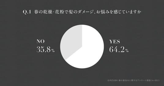 20~50代女性651名を対象に実施したアンケートの結果、64.2%が春の乾燥や花粉による髪のダメージを実感