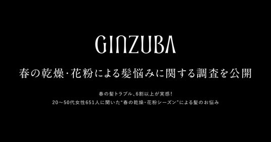 ポーラ・オルビスグループのトリコ株式会社(本社:東京都新宿区、代表取締役社長:花房香那)が手がけるヘアケアブランド「GINZUBA(ギンズバ)」は、20~50代の女性ユーザー651名を対象に『春の乾燥・花粉による髪悩み』に関するアンケート調査を実施しました。その結果、春の乾燥や花粉による髪のダメージを「感じている」と回答した人の割合が64%以上にのぼる一方で、適切なケア方法が分からず何も対策していない人が57%以上いることが判明。春の髪ダメージを感じながらも、適切なケアが十分にできていないことが分かりました。