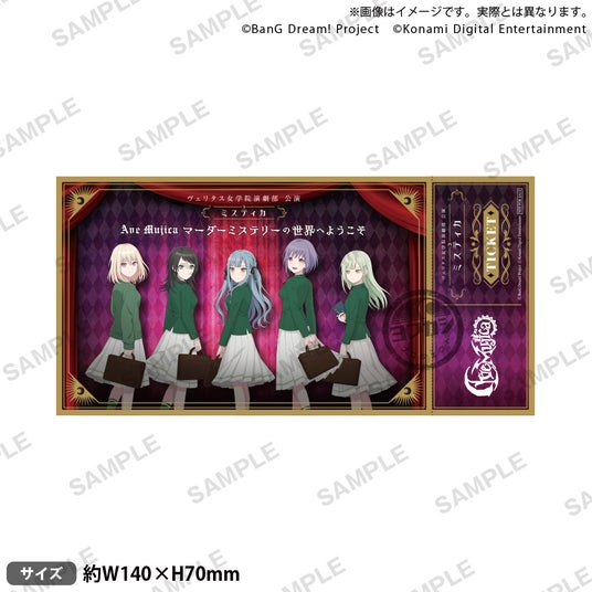 特典付チケットを購入すると、「Ave Mujica マーダーミステリー 五人のソワレ」関係するヴェリタス女学院演劇部による公演『ミスティカ』の観劇チケット風ステッカーがもらえます。