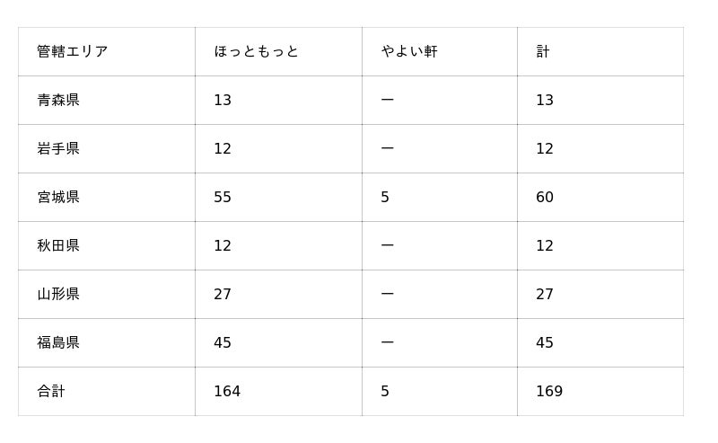 ・東北支社内における店舗数