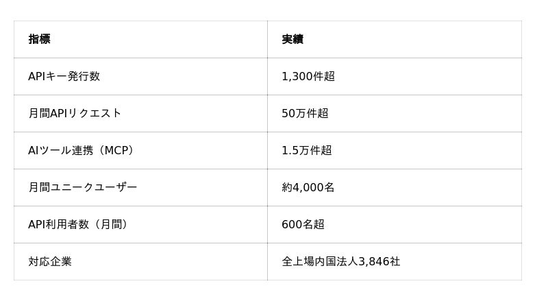 β公開から約10日で1,300件超のAPI利用登録。日本初*、AIから直接つながる有報データ基盤「EDINET DB」正式リリース