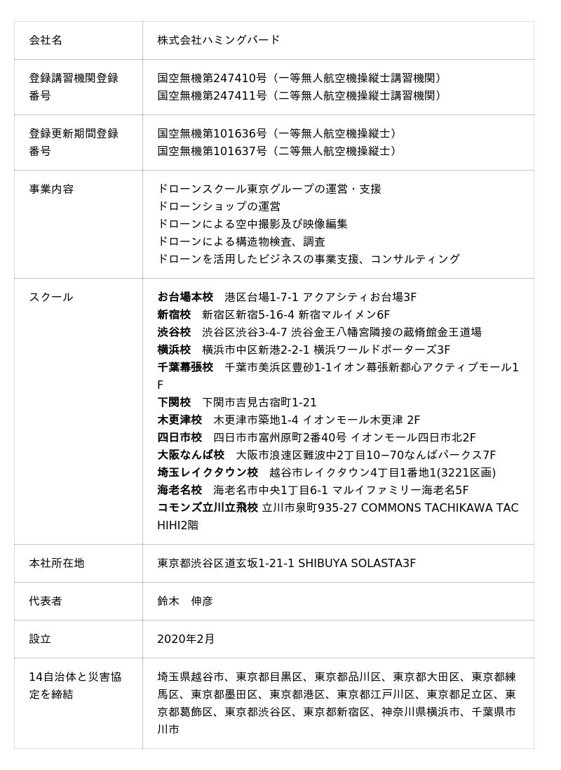 ドローンスクール東京(株式会社ハミングバード)について