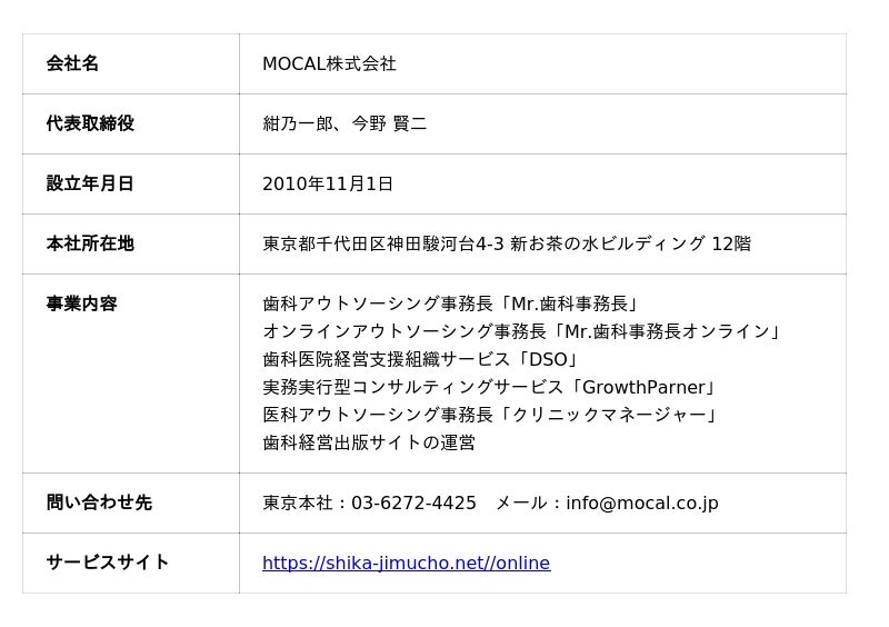 MOCAL株式会社(本社:東京都千代田区、代表取締役:紺乃一郎、今野賢二)は、歯科医院向けの事務長アウトソーシングサービス「Mr.歯科事務長」の、オンライン版サービス「Mr.歯科事務長オンライン」を2026年3月2日(火)から開始いたします。