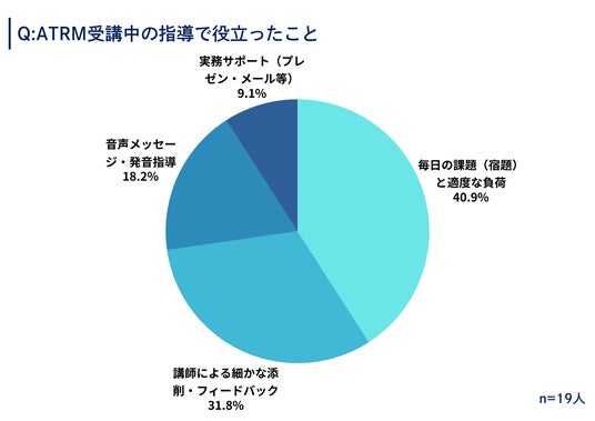 ATRMの受講生アンケートからは、指導面において「毎日の課題と適度な負荷(40.9%)」が最も高く支持されていることが分かりました。
