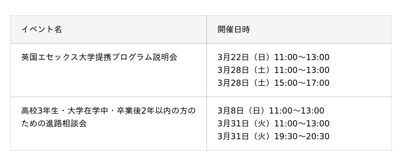 ■進路検討中の方向けイベント開催日程(高校生・大学生・既卒・社会人の方)