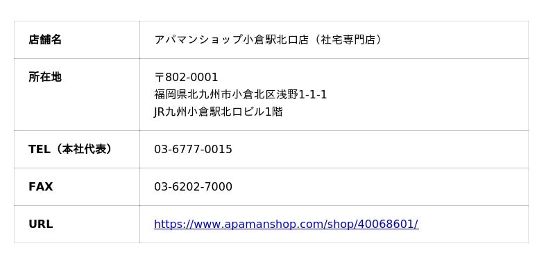 法人契約・社宅手配に関するご相談は、アパマンショップ小倉駅北口店(社宅専門店)までお問い合わせください。