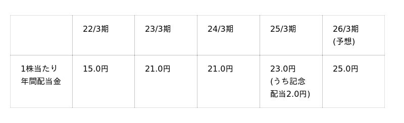 当社は、上場以来減配せず安定的な配当を実施してまいりました。このような当社の姿勢をより明確化する観点から、2026年3月期の期末配当より、配当方針を「累進配当(※)」に変更いたします。