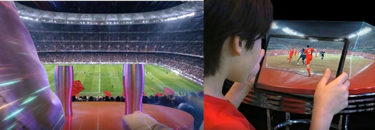 新たな視聴体験イメージ(左:3Dで現地と同等な視聴感、右:ARで好きな選手に視点をフォーカス)