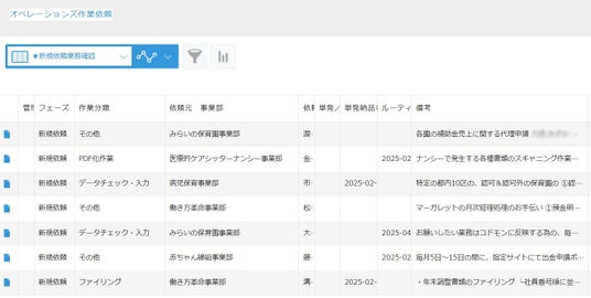 いつまでに、誰が何を頼みたいか、誰がどこまで着手しているか、Kintone上でリストになっている