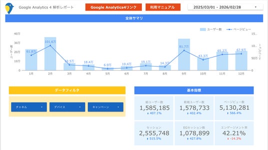 ※Google Analytics 4(GA4)管理画面より、2025年3月~2026年2月の実績を表示