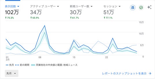 こうした安定した閲覧基盤の上で、2月は地域イベントや街の動きが重なり、現場取材と速報を積み重ねた結果、月間100万PVに到達しました。