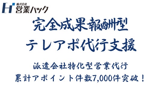 株式会社営業ハック(本社:東京都豊島区、代表取締役:笹田裕嗣)は、派遣会社向けの営業代行支援において、累計アポイント件数が7,000件を突破したことをお知らせいたします。あわせて、より安定的に商談創出をご提供するため、運用・改善体制を強化いたします。