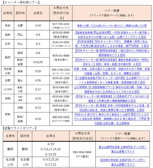 FDA チャーター便の運航情報について