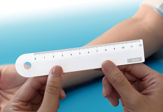 wemoはブランド誕生以降、常にユーザーの声を反映しながら様々なタイプのウェアラブルメモを開発してきました。今回、看護師さん達がさらに手軽に計測とメモを両立できるよう、リアルな現場の声をもとに開発したのが油性マーカーペンで書き込みができる定規「wemoスケール [ナースモデル]」です。看護の現場では、創部や褥瘡の大きさを計測する機会が頻繁にあります。これまでは使い捨ての付箋状のメモを購入したり、裏紙を裁断して自作したりと、準備にも時間的・金銭的なコストがかかっていました。本製品は従来のwemoシリーズ同様、使い捨てずに何度も書いて消して使用でき、看護師さんに便利な機能をもった新しい医療現場特化型スケールとして誕生しました。