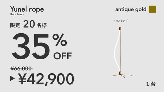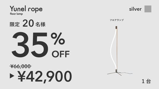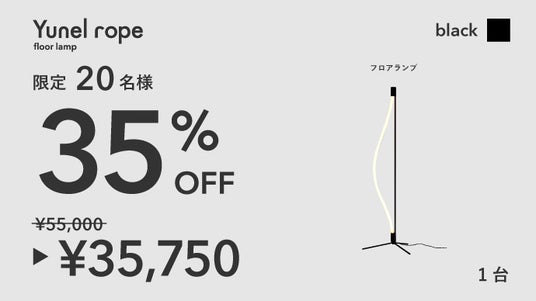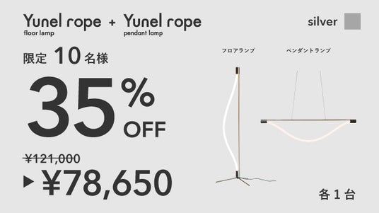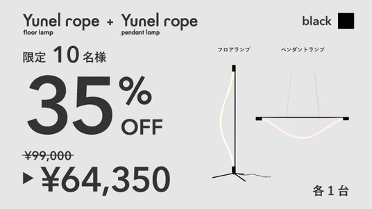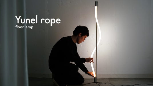 曲げられるフロアランプ「Yunel rope」Makuake公開5時間で売上100万円突破
