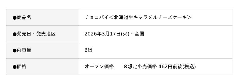 株式会社ロッテ(東京都新宿区、代表取締役社長執行役員:中島英樹)は2026年3月17日(火)にチョコパイブランドの新シリーズ「チョコパイでひと休み」の第3弾として「チョコパイ<北海道生キャラメルチーズケーキ>」を発売します。