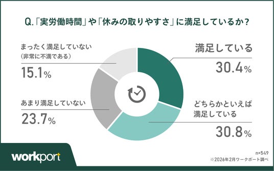 一方で、「あまり満足していない」(23.7%)、「まったく満足していない(非常に不満である)」(15.1%)と回答した人は合わせて38.8%と、3人に1人を超える働き手が労働時間や休暇に対して何らかの課題を感じている実態が浮き彫りとなりました。