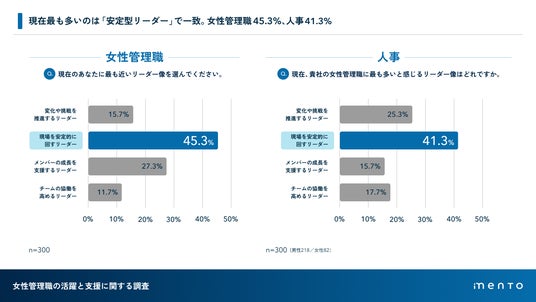 - 女性管理職「現場を安定的に回すリーダー」 45.3%