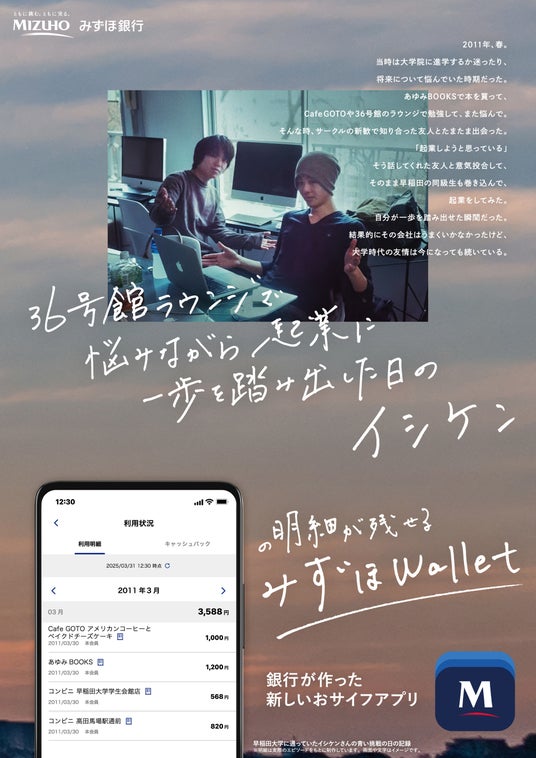 - 学生街に突如出現!挑戦エピソードを「みずほWallet」の利用明細で振り返る「青い挑戦の日の記録」