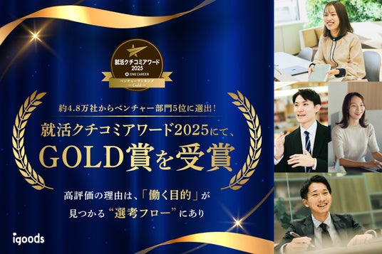 オリジナルグッズを企画制作するアイグッズ株式会社(本社:東京都渋谷区)は、2025年3月、株式会社ワンキャリアが発表した「就活クチコミアワード2025」ベンチャー部門にてGOLD賞を受賞しました。