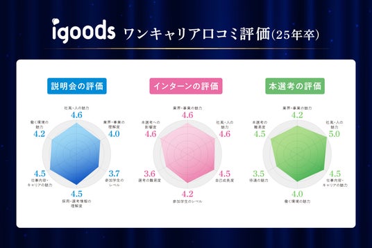 ※ 投稿したユーザーに影響度を設定して、単純な平均点ではなく、総合点を算出しています。影響度は、基本的にイベントへの参加経験が豊富な方の影響を大きくするという考え方のもと、ONE CAREERでの投稿をある程度繰り返しているユーザーについてさまざまな要素をもとに設定しています。そのため影響度はユーザーによって異なります。