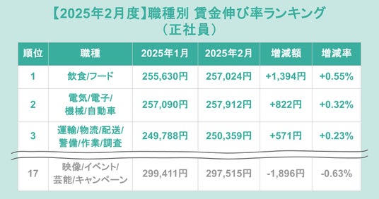 分析用求人ビッグデータを提供する、株式会社フロッグ(所在地:東京都千代田区、代表取締役:阪野 香子、以下「当社」)は、「2025年2月度 職種別 賃金伸び率ランキング」を発表しました。
