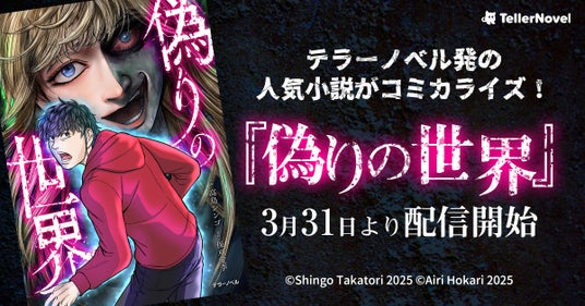 株式会社テラーノベル(本社:東京都港区、代表取締役社長:蜂谷宣人)はこの度、累計DL数760万突破(※)の小説プラットフォーム「テラーノベル(https://teller.jp/)」発の人気小説『偽りの世界』がコミカライズされ、3月31日より以下ストアでの配信を開始したことをお知らせいたします。
