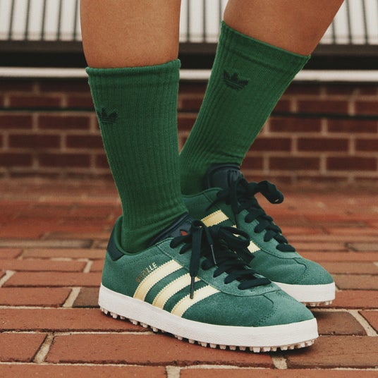 さらに、スタンスミスゴルフ、サンバゴルフに続き、ガゼルゴルフがラインナップに加わります。1960年代にトレーニングシューズとして登場したガゼルのタイムレスなシルエットはそのままに、アウトソールをゴルフのスパイクレス仕様にカスタムして、グリップ力を確保しています。