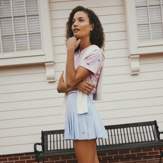 今年最初のメジャートーナメントに合わせたコレクションでは、ブルー、ホワイト、グリーン、イエローを組み合わせたカラーパレットを採用しています。メンズコレクションでは、レジェンドたちにインスパイアされたセンタープレス仕様のワイドパンツの他、ジャカード織りのトーナルアーガイル柄が特徴のニットポロシャツ、トレフォイルのプルが付いたハーフジップスウェットなどのレイヤリングアイテムも充実しています。ウィメンズは、Vネックとスリーストライプスのバンドディテールがアイコニックなノースリーブワンピースの他、ウエストにコントラストカラーのパイピングを施したプリーツスカートやカシミア混のクルーネックセーターなどをラインナップしています。