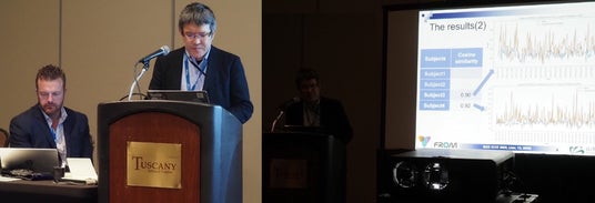 ICCE2025においてストレス可視化の研究成果を発表する共同研究者の山形大学 原田知親助教