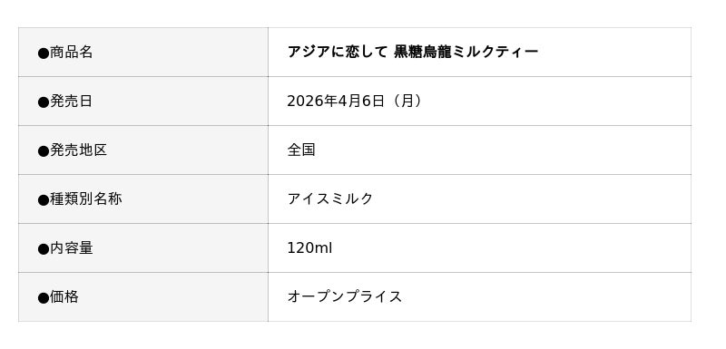 - ミルクアイスは黒糖烏龍アイスとバランスよく味わえるよう、すっきりとしたやさしい甘さにしています。