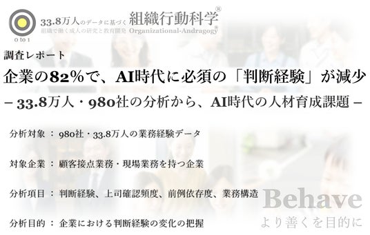 調査レポート公開:企業の82%で、AI時代に必須の「判断経験」が減少。33.8万人・980社の分析から、AI時代の人材育成課題を公開(組織行動科学(R))