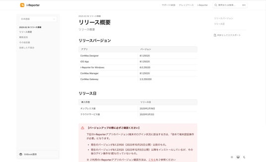 2025年2月19日(水)にリリースされるバージョンから順次各製品のリリースノートが新しくなります。