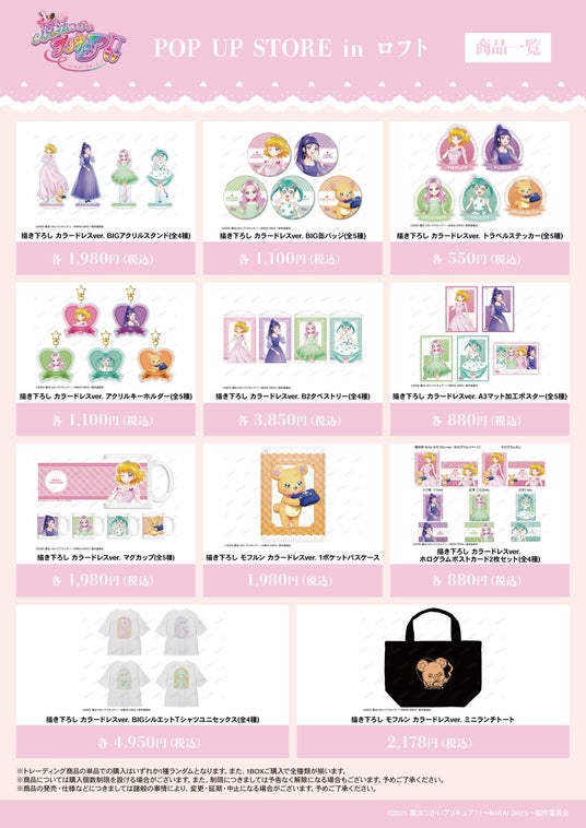 2025年2月21日(金)より池袋ロフト、3月15 日(土)より横浜ロフト・梅田ロフト、4月11日(金)より栄ロフトの計4店舗にて「『魔法つかいプリキュア!!~MIRAI DAYS~』 POP UP STORE in ロフト」の開催が決定いたしました。