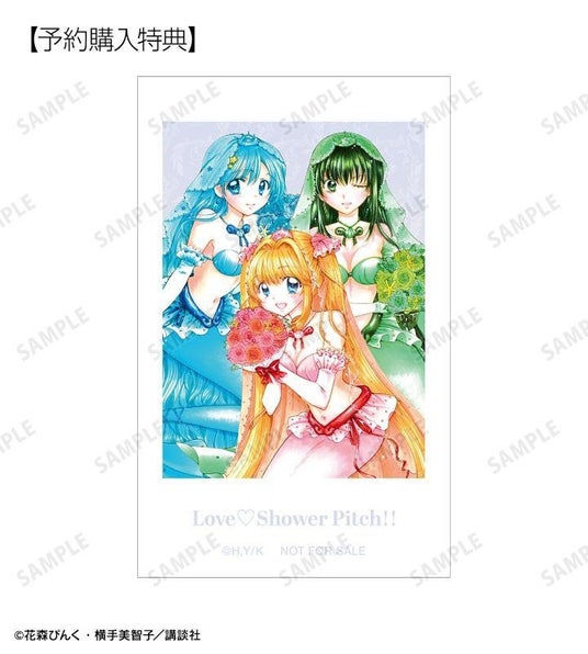 当商品を1BOX、または単品にて1BOX相当数ご注文ごとに、予約購入特典として「花森ぴんく先生 描き下ろし 集合 ウェディングマーメイドver. イラストカード AMNIBUS&アニメイト限定特典」を付属いたします。