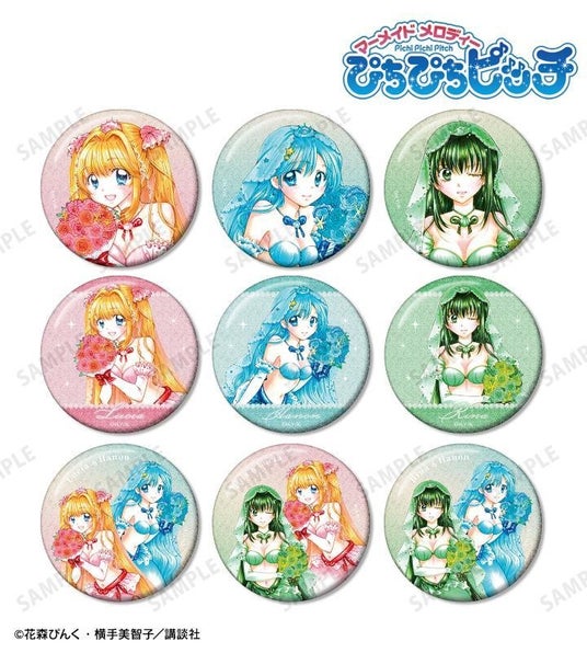 ▼花森ぴんく先生 描き下ろし ウェディングマーメイドver. トレーディンググリッター缶バッジ