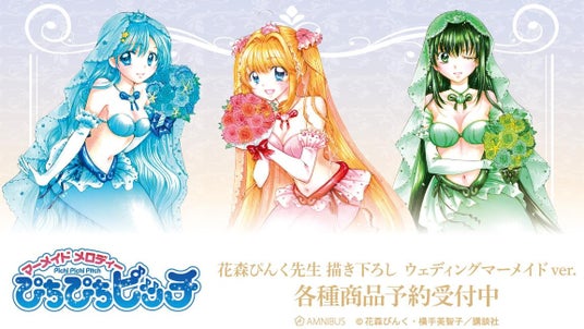 『ぴちぴちピッチ』の花森ぴんく先生 描き下ろし ウェディングマーメイドver. トレーディングアクリルカードなどの受注を開始!!アニメ・漫画のオリジナルグッズを販売する「AMNIBUS」にて